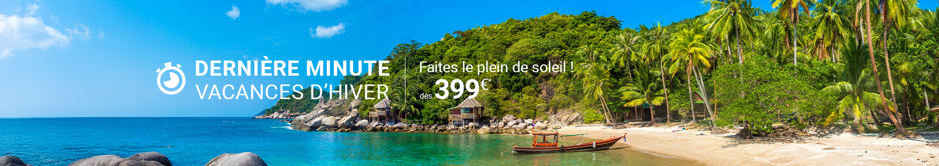 Les vacances d'hiver approchent à grands pas, et il est temps de planifier une escapade mémorable pour vous et vos proches ! Profitez de notre offre dernière minute et faites le plein de souvenirs et de soleil. *prix constaté le 14/01 pour la période du 7/02 au 9/03/2026.