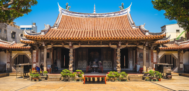 Les temples, comme le célèbre temple Longshan à Taipei, bien qu’issus de traditions religieuses diverses, cohabitent avec des sanctuaires shintoïstes et des influences architecturales japonaises, reflétant une société où plusieurs croyances se croisent.